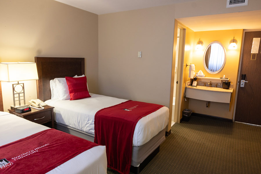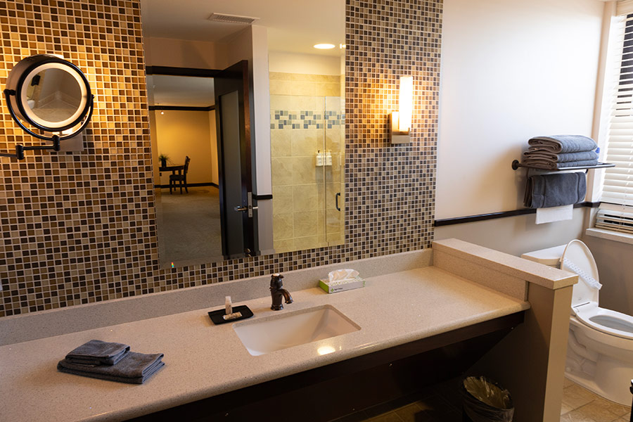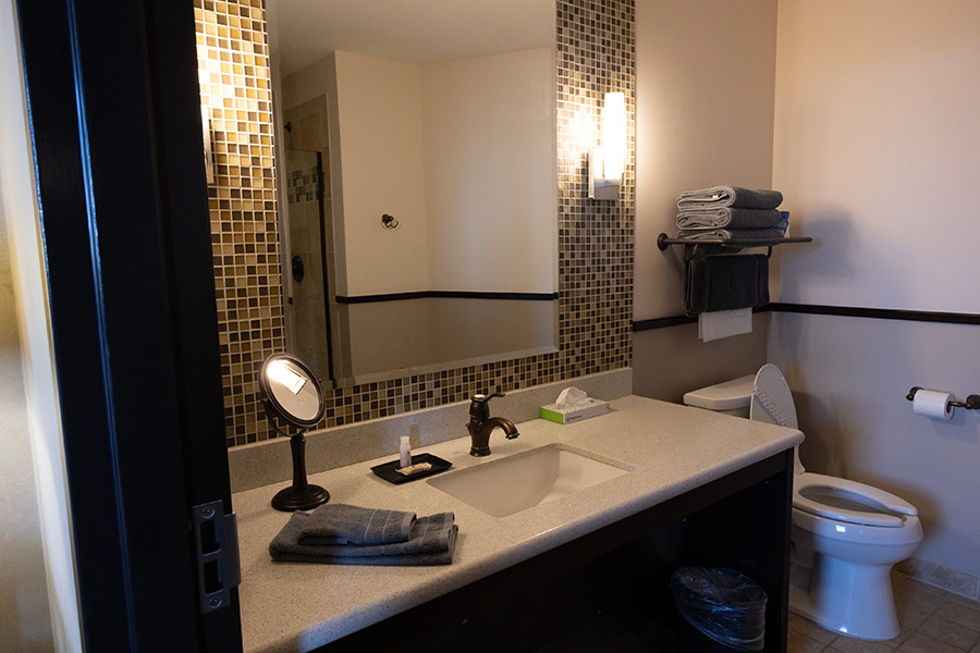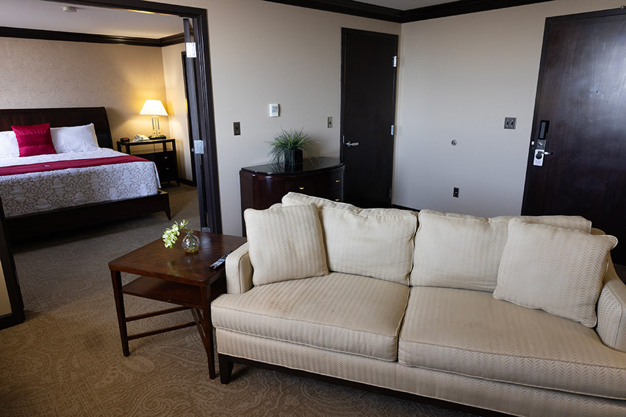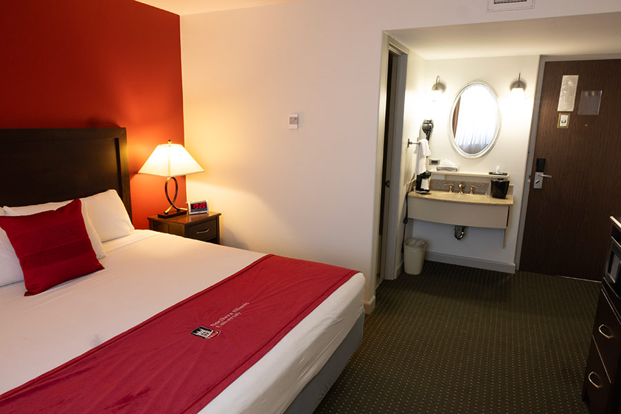 With 78 rooms and suites, including three executive suites, contemporary accommodations, comfort and convenience await you at the Hotel at Holmes. Explore your room options and choose the space that fits your needs. All rooms and suites include our complimentary room amenities. Learn more about our room amenities.